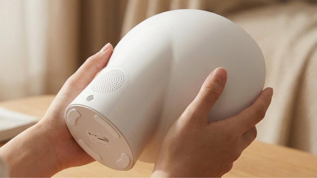 The body of the clock is a matte, slightly off-white textured plastic — a deliberate choice for wide appeal and a premium feel. Similar to most consumer electronics, plastic is used here for durability, function and performance. The screen uses transparent plastic to enable touch functions, keeping the interface clean and unobtrusive.