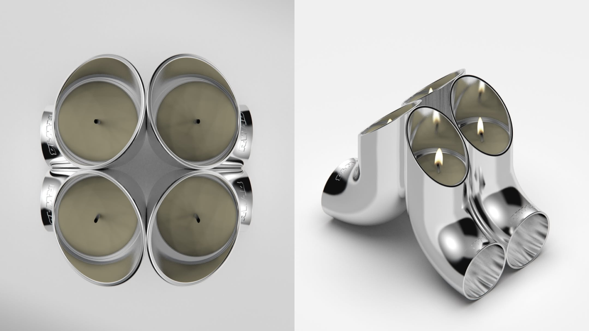 "I wanted to create an ironic contrast between our fast, performance-driven society and the quiet, slow ritual of a tea light—which led me to the tuning-inspired exhaust concept."