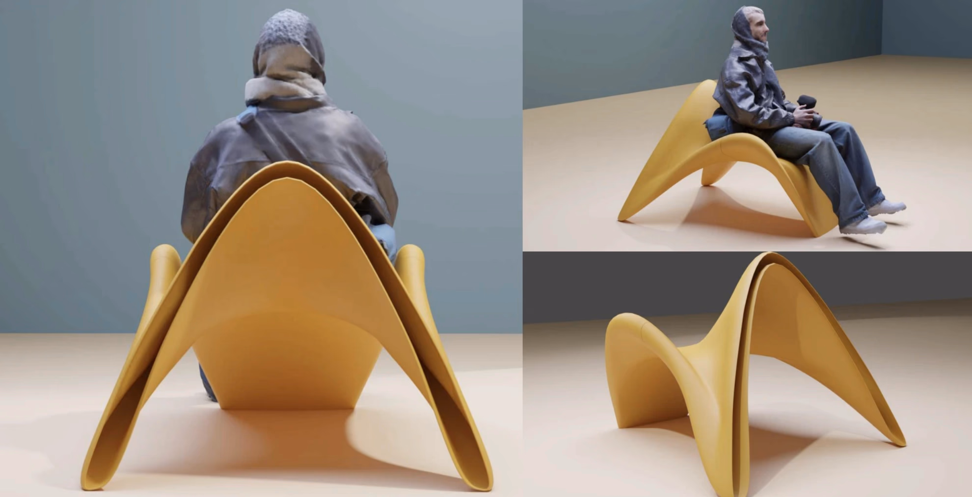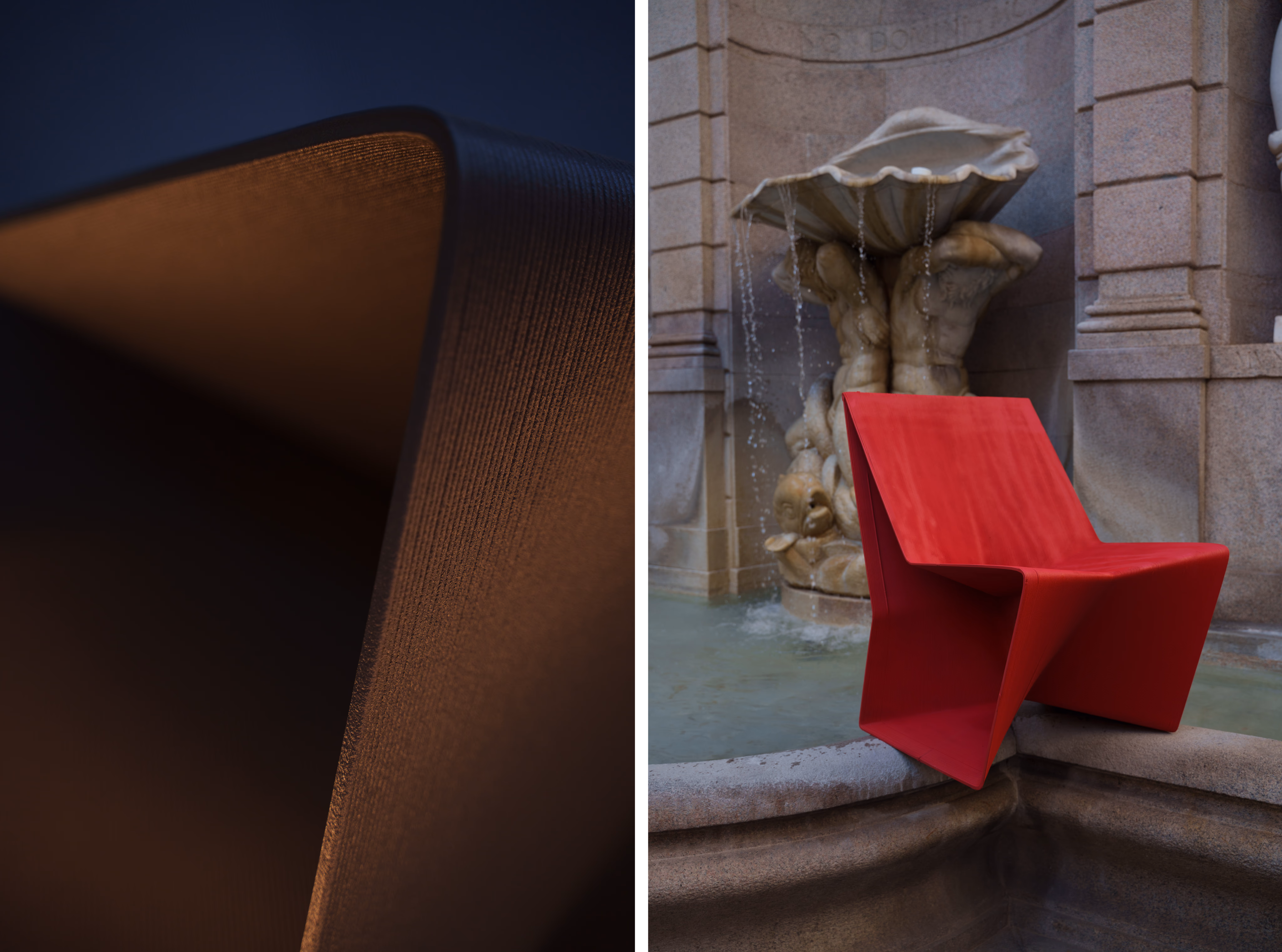 By designing directly for fabrication, Brett embraced the material behavior and constraints of robotic extrusion. The chair’s cantilevered sides, nested curvature, and single-piece construction are all intentional moves made early in Vizcom and carried through to the final print. The result is a piece that feels both sculptural and functional—a design made for the future, from the very first line.