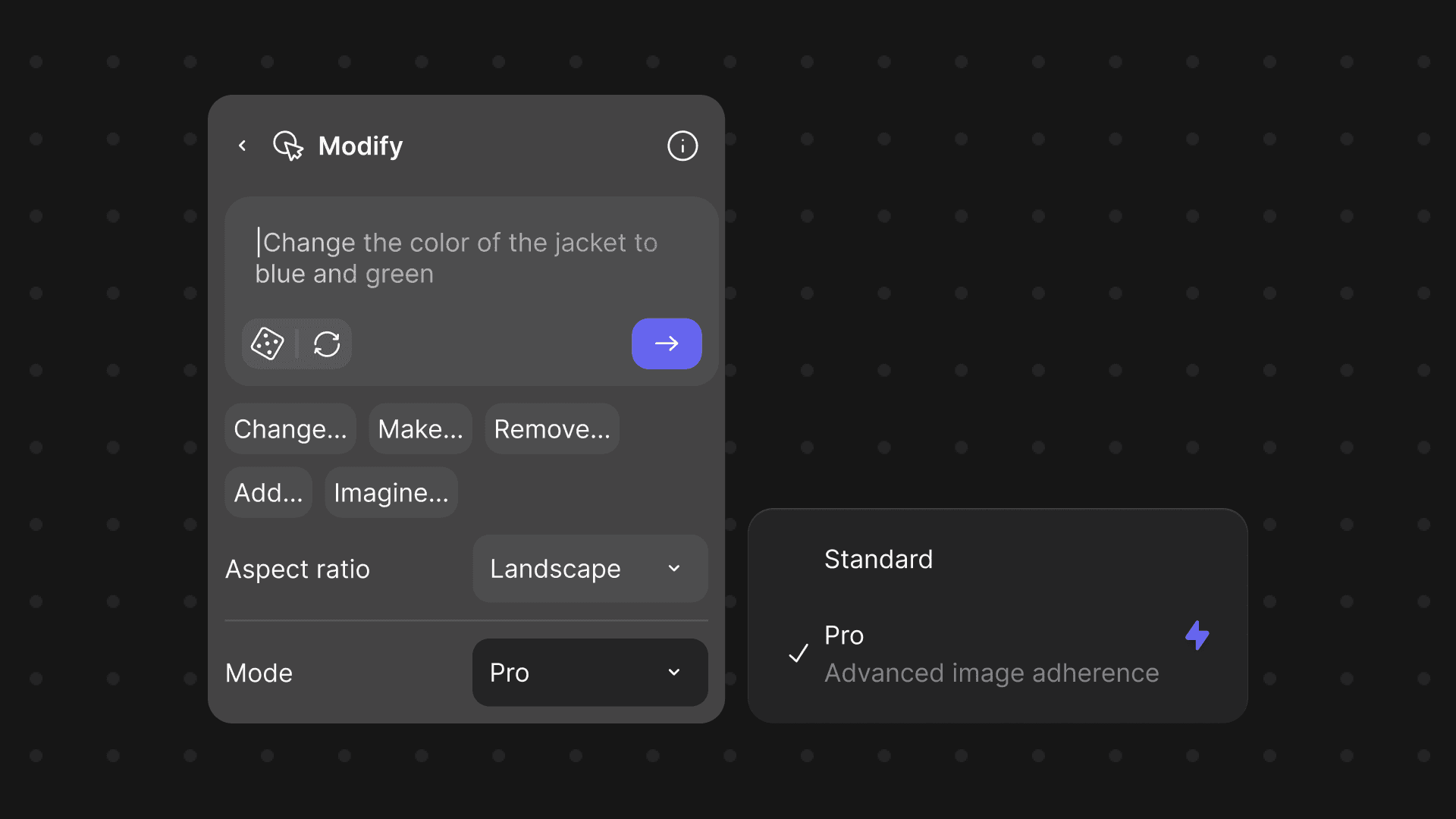 If you’re already on Pro or Enterprise, you’ll see the Mode dropdown inside the Modify block. Just switch to Pro when you want that extra level of control and fidelity.