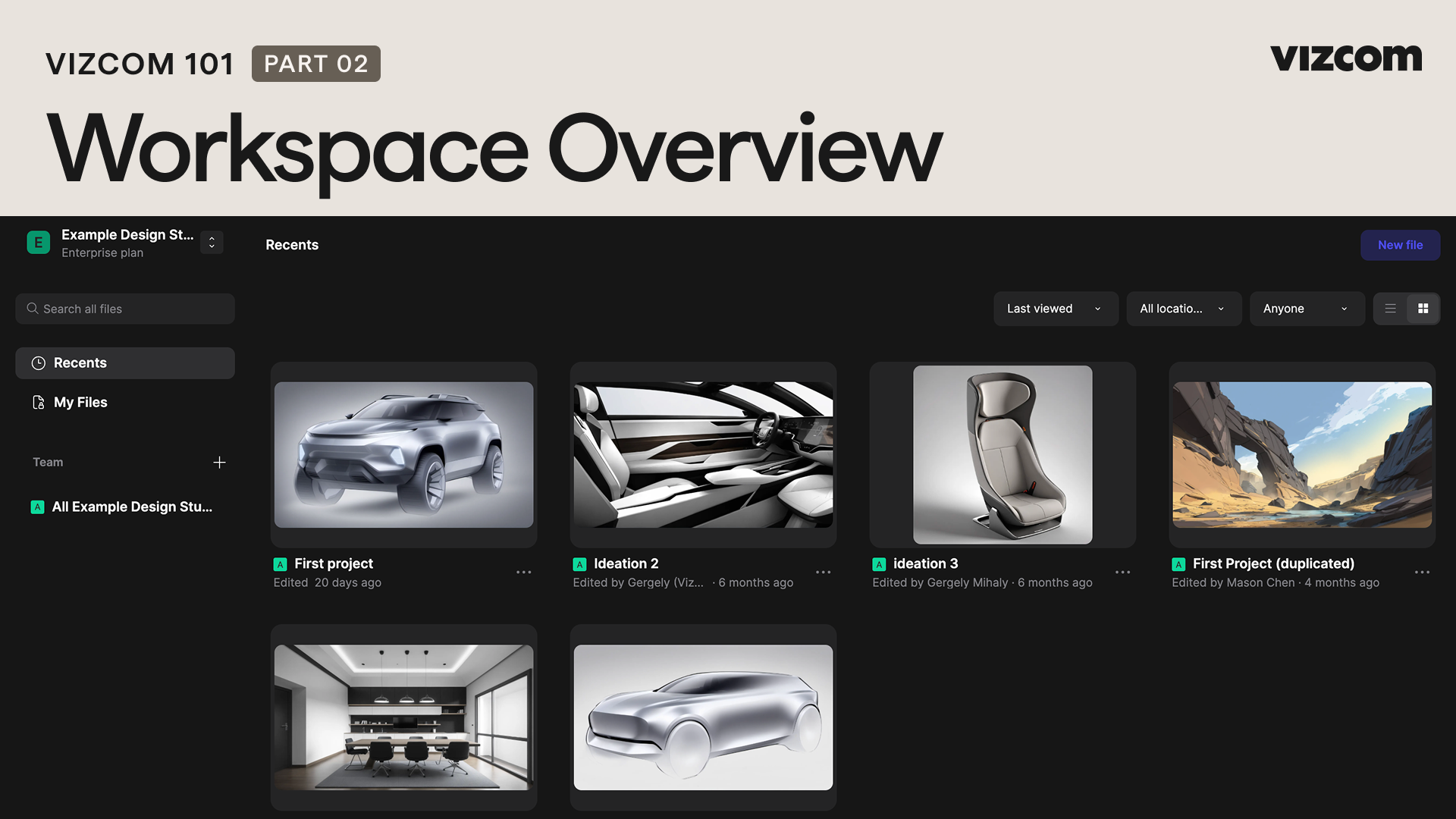 Now that you’re signed in, it’s time to get oriented. Your workspace is where all your creative work happens — from sketching and prompting to organizing and sharing. Understanding the layout and structure of your Vizcom workspace ensures you’re set up to collaborate or work solo efficiently.