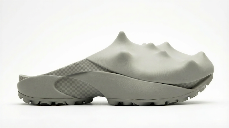 The design keeps the standard mule open back but leans hard into the manufacturing methods abilities with flowing curves and a spiky toe-box. So much of design is material or process reliant and therefore a lot of traditional mule design is based on the constraints of leather. I wanted to utilise 3D printing to the max even using a modify node asking to adapt my then final design to be more 3D printing friendly. This has led to a Mule that shows its design process, Vizcom and Zellerfield.