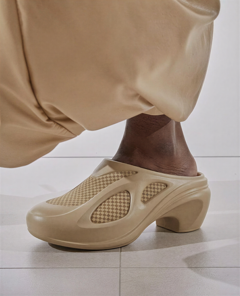 Inspired by the delicate structure of butterfly wings, the Nonu Heel Mule features a pattern that creates a visually striking, wing-like surface. Beyond aesthetics, this pattern strategically reduces material weight, making the mule lighter and more effortless to wear. The form feels organic and sculptural, bringing a sense of lightness and elegance to the overall design.