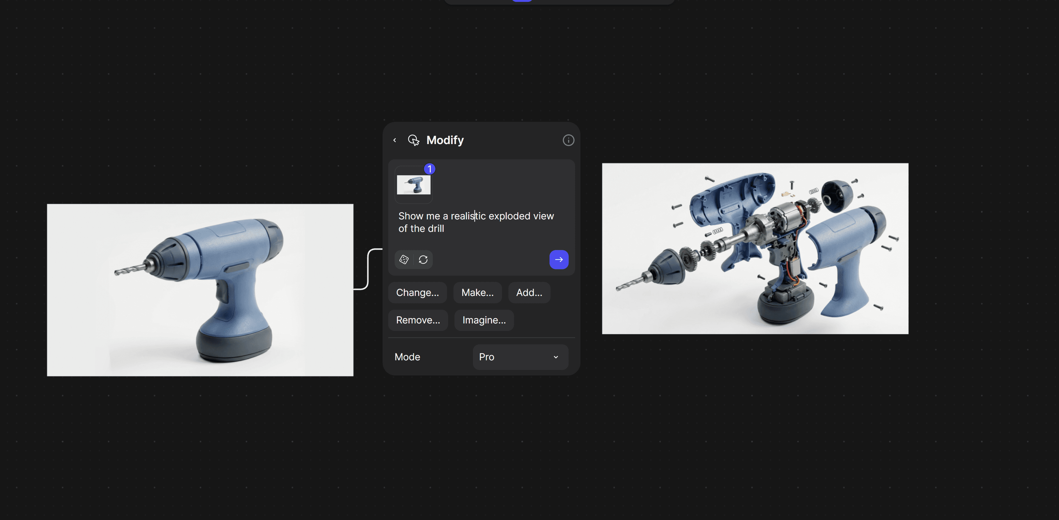 Modify Pro takes a plain product photo and turns it into an exploded view that suggests how the internals might come together.